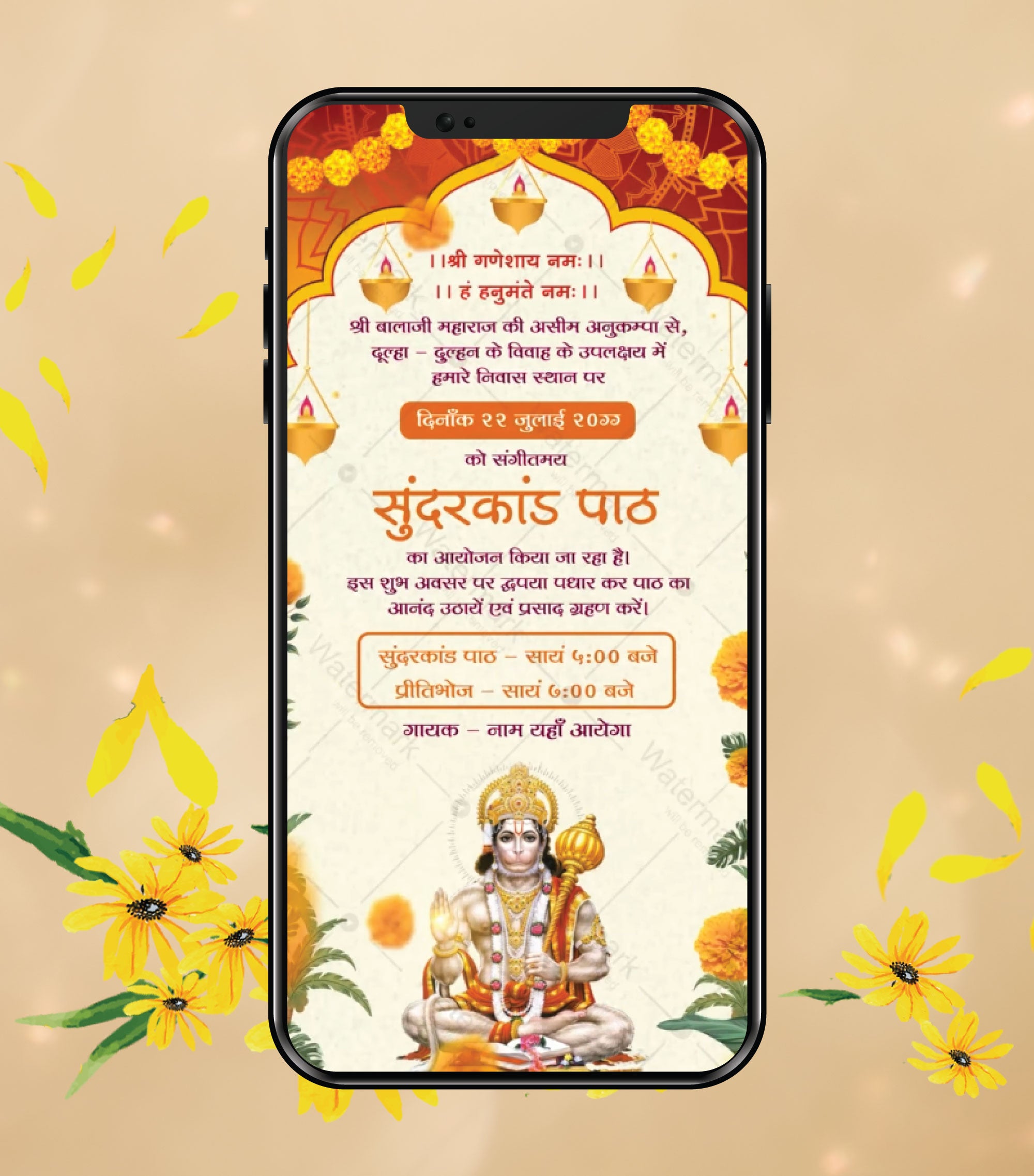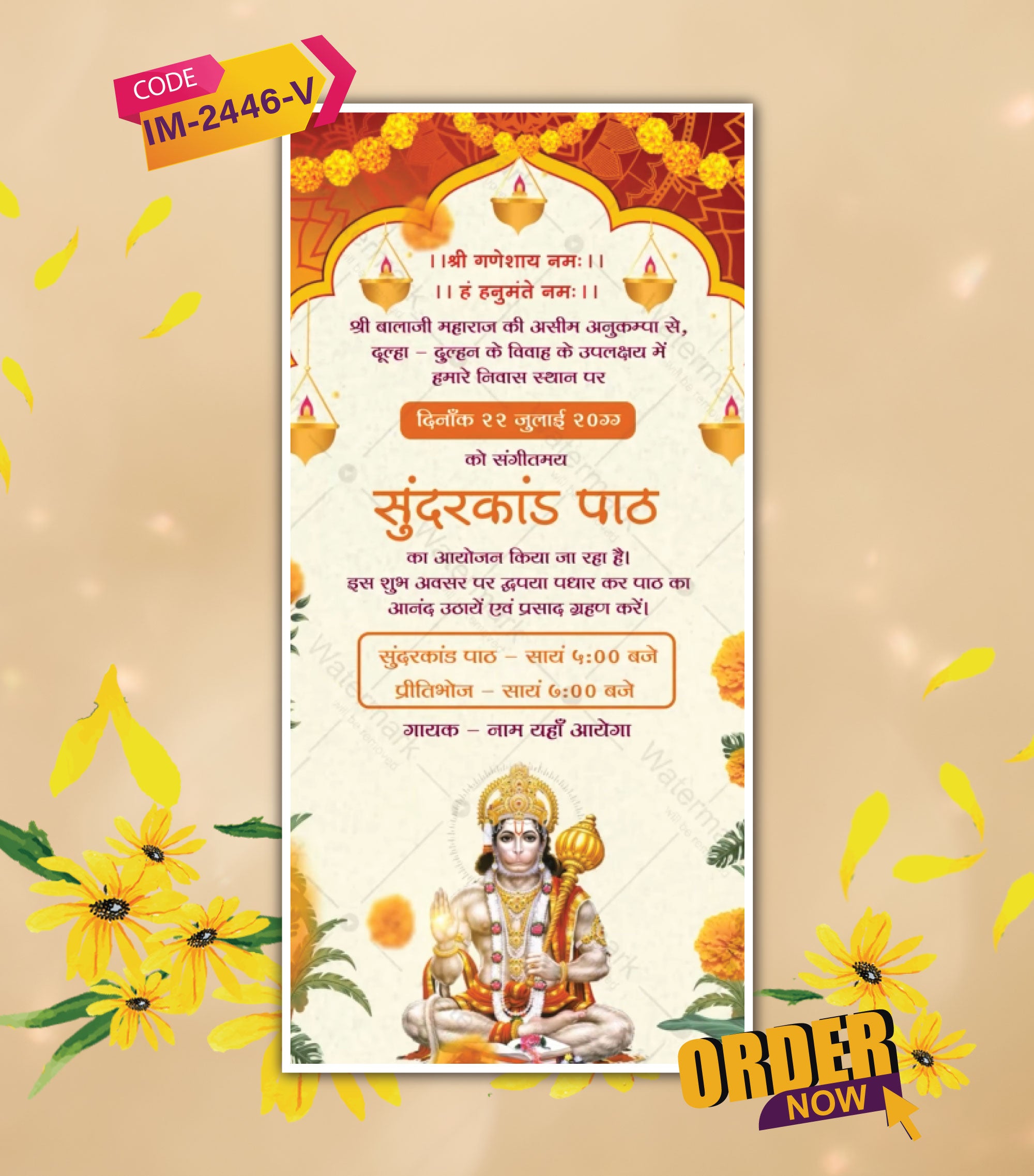 Sunderkand Invitation Video In Hindi | Divine Hanuman Path Card Design | IM-2446-V