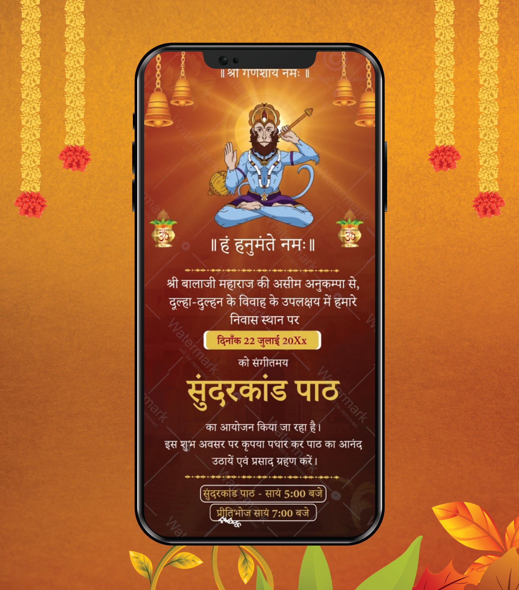 This digital invitation video eliminates printing hassles, saving you both time and cost while delivering a professional, high-quality look. Its glowing animations and Sanskrit mantras add an authentic spiritual touch, making it suitable for a wide range of events such as Sunderkand Path, Hanuman Chalisa recitals, Bhajan Sandhya, Mata Ki Chowki, or other devotional ceremonies.