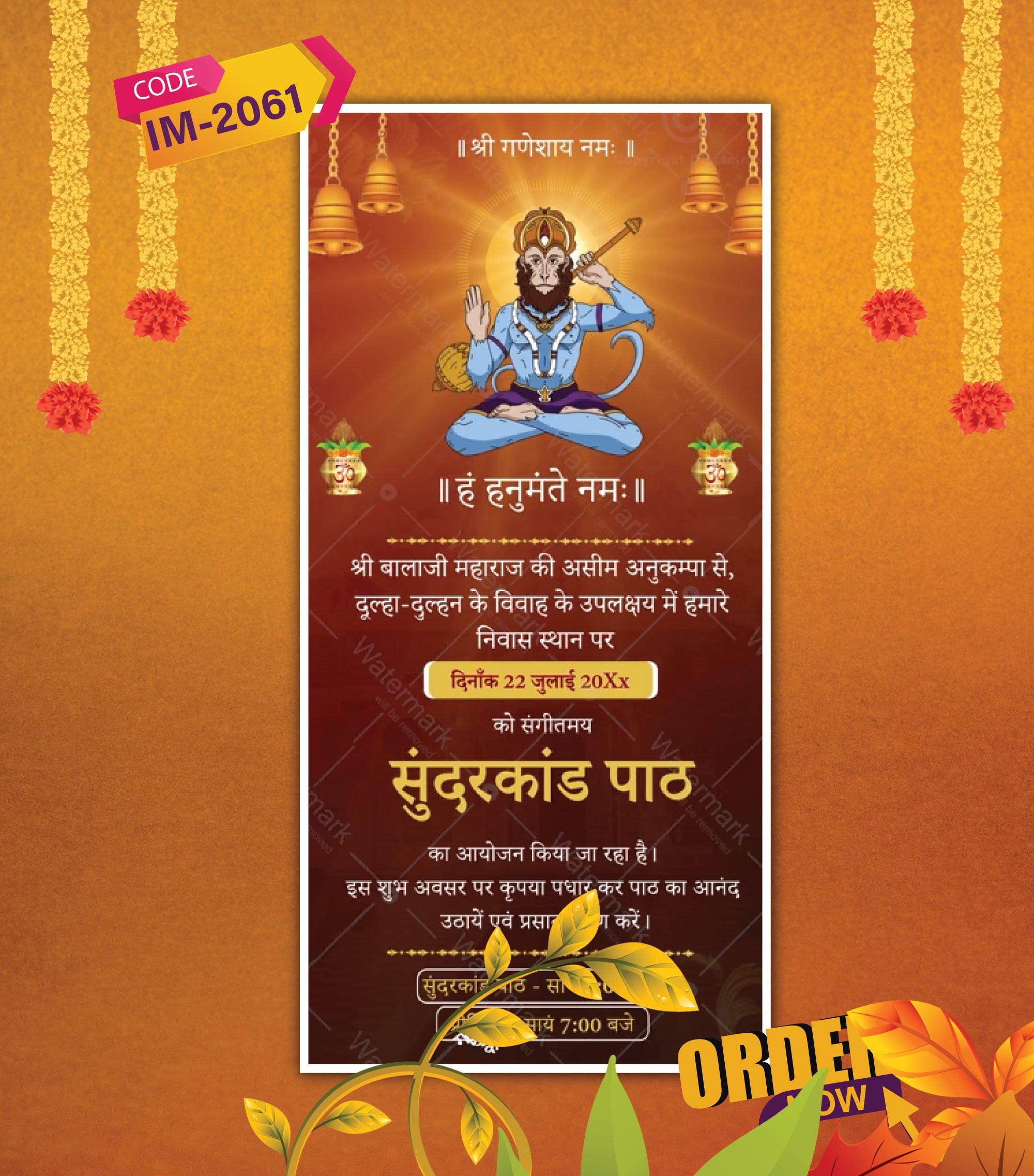 Sunderkand Path Invitation Video | Balaji Theme with Bells & Kalash | IM-2061