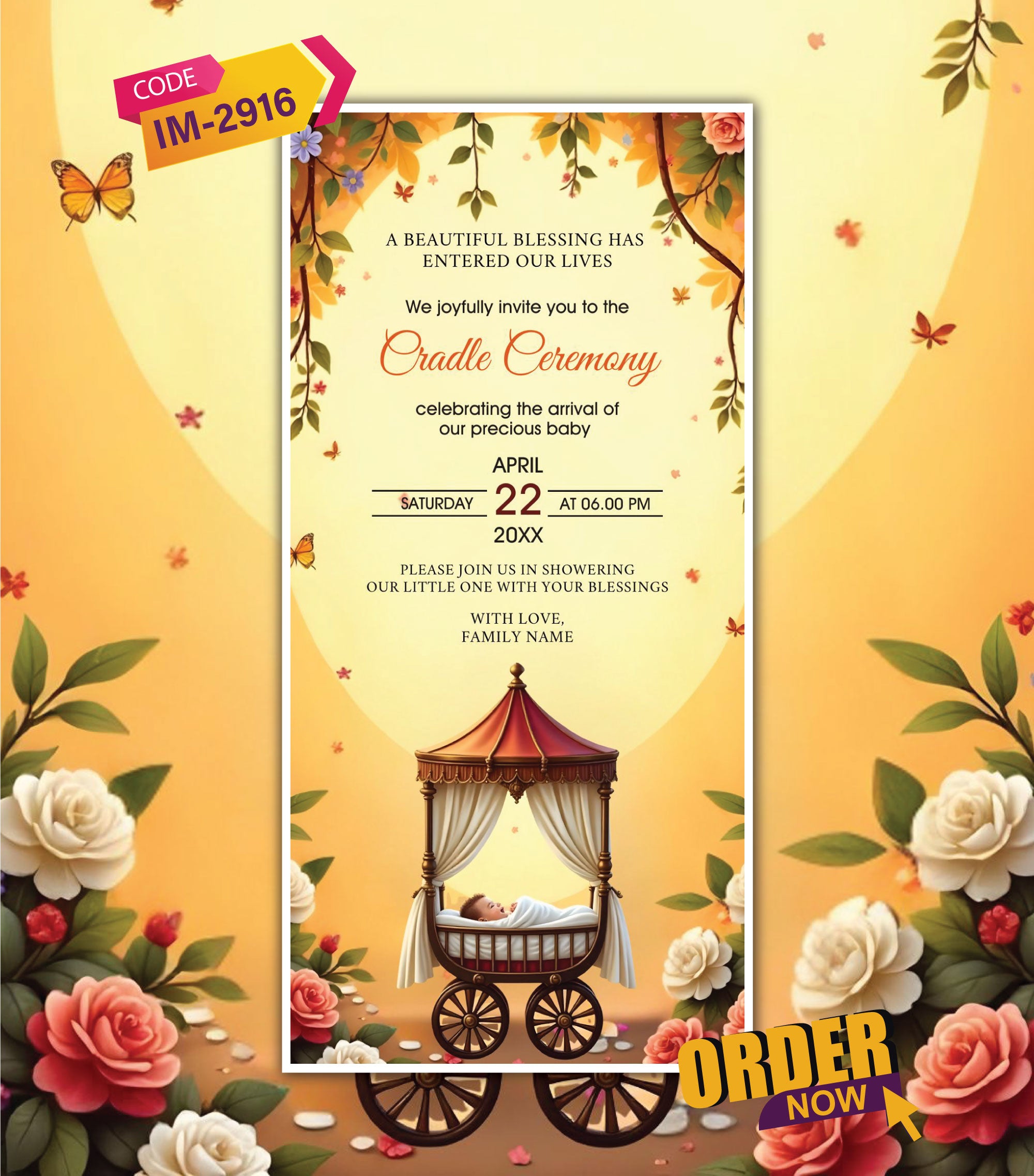 Cradle Ceremony Digital Invitation Card for Baby | Elegant Baby Welcome E-Invite | IM-2916