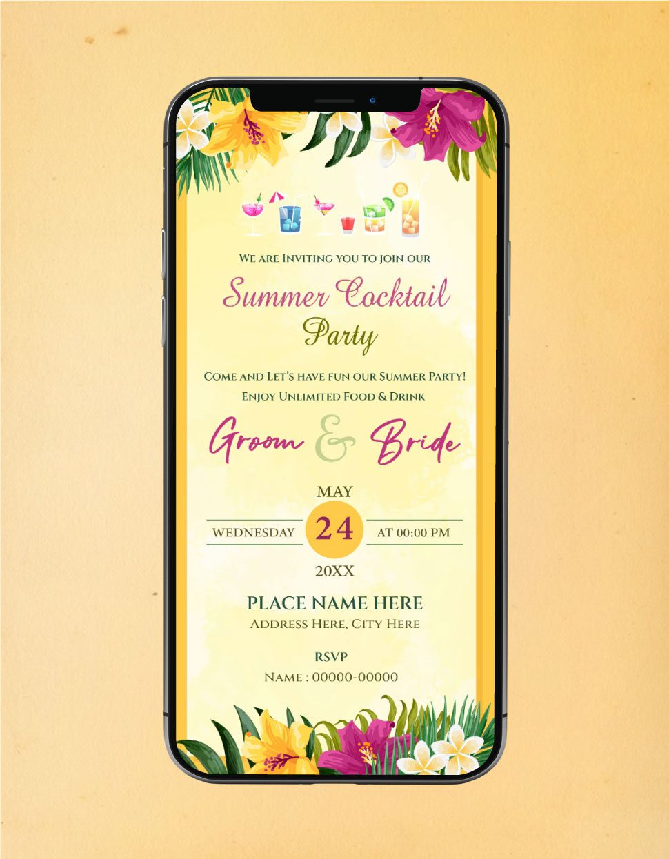 #CocktailPartyInvitation #WeddingCocktailNight #SummerCocktailInvite #PreWeddingPartyCard #WeddingInvitationOnline #DigitalCocktailCard #BrideGroomPartyInvite #WhatsAppCocktailEInvite #PoolsidePartyInvitation #UnlimitedFoodDrinkParty #WeddingPartyCard #FloralCocktailInvite #CocktailThemeWedding #DigitalWeddingInvitation #WeddingEcardDesign #TropicalPartyInvite #YellowThemeInvitation #WeddingPartyPlanning #CocktailNightEvent #WeddingCelebrationCard
