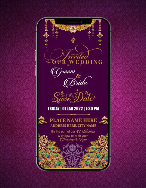 #RoyalWeddingInvitation #PeacockWeddingCard #SaveTheDateDigitalCard #IndianWeddingEInvite #PurpleGoldWeddingTheme #LuxuryWeddingInvitation #WhatsAppWeddingCard #TraditionalIndianWeddingInvite #CustomizableECard #EcoFriendlyWeddingCard #DigitalWeddingAnnouncement #WeddingInvite2025 #ElegantWeddingECard #ModernIndianWeddingCard #GoldenWeddingInvitation #CulturalWeddingInvite #MobileWeddingInvitation #GrandWeddingInvite #HinduWeddingECard #PeacockThemeWeddingInvitation
