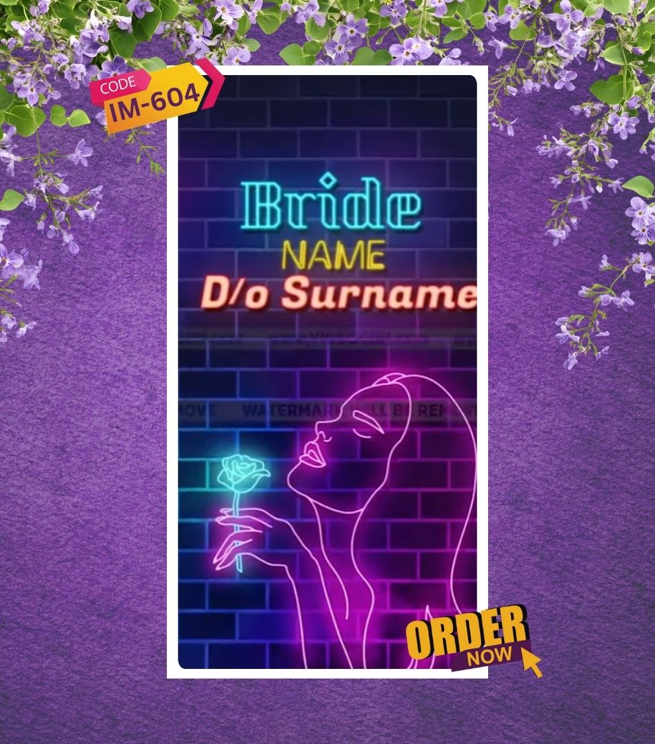 This video is fully customizable with the couple’s names, date, venue, and personalized messages. Optimized for WhatsApp, Instagram Reels, and social media sharing, the Neon Wedding Invitation Video is ideal for those looking to elevate their event with a trendy, youthful, and urban vibe.