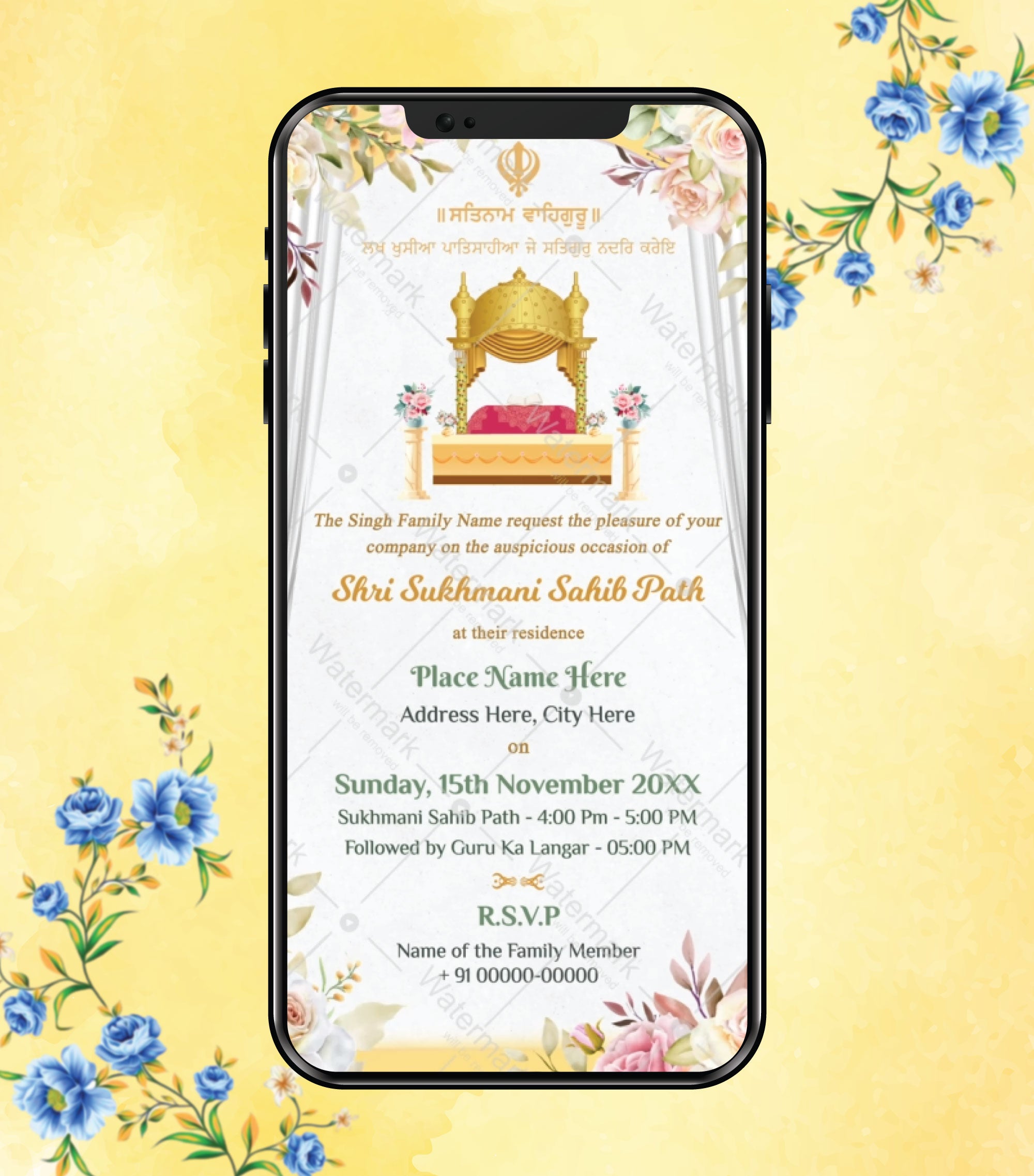 #SukhmaniSahibWeddingInvite #FloralGurdwaraInvite #InviteMart #SikhWeddingEInvite #PathCeremonyCard #GurdwaraInvitation #DigitalSikhCard #SukhmaniPathVideo #SpiritualWeddingInvite #PunjabiWeddingECard #SikhRitualInvitation #EcoFriendlyECard #DigitalReligiousInvite #PaperlessWeddingCard #SikhMarriageVideo #GurdwaraFunctionECard #SikhFamilyInvite #CustomizableEInvite #BlessingsCeremonyVideo #PB03V