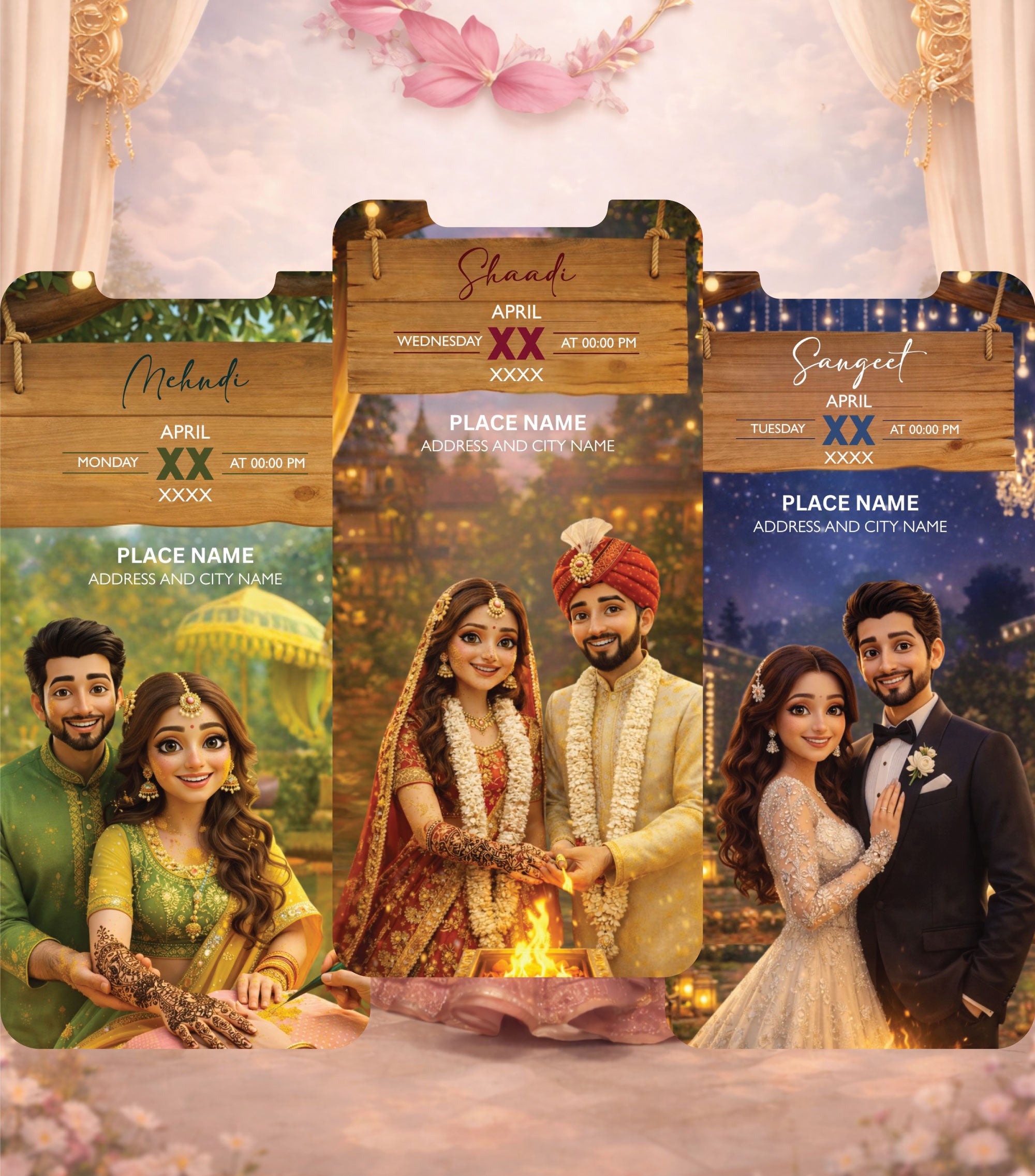 Includes Wedding, Haldi, Mehndi, Sangeet, and Reception cards