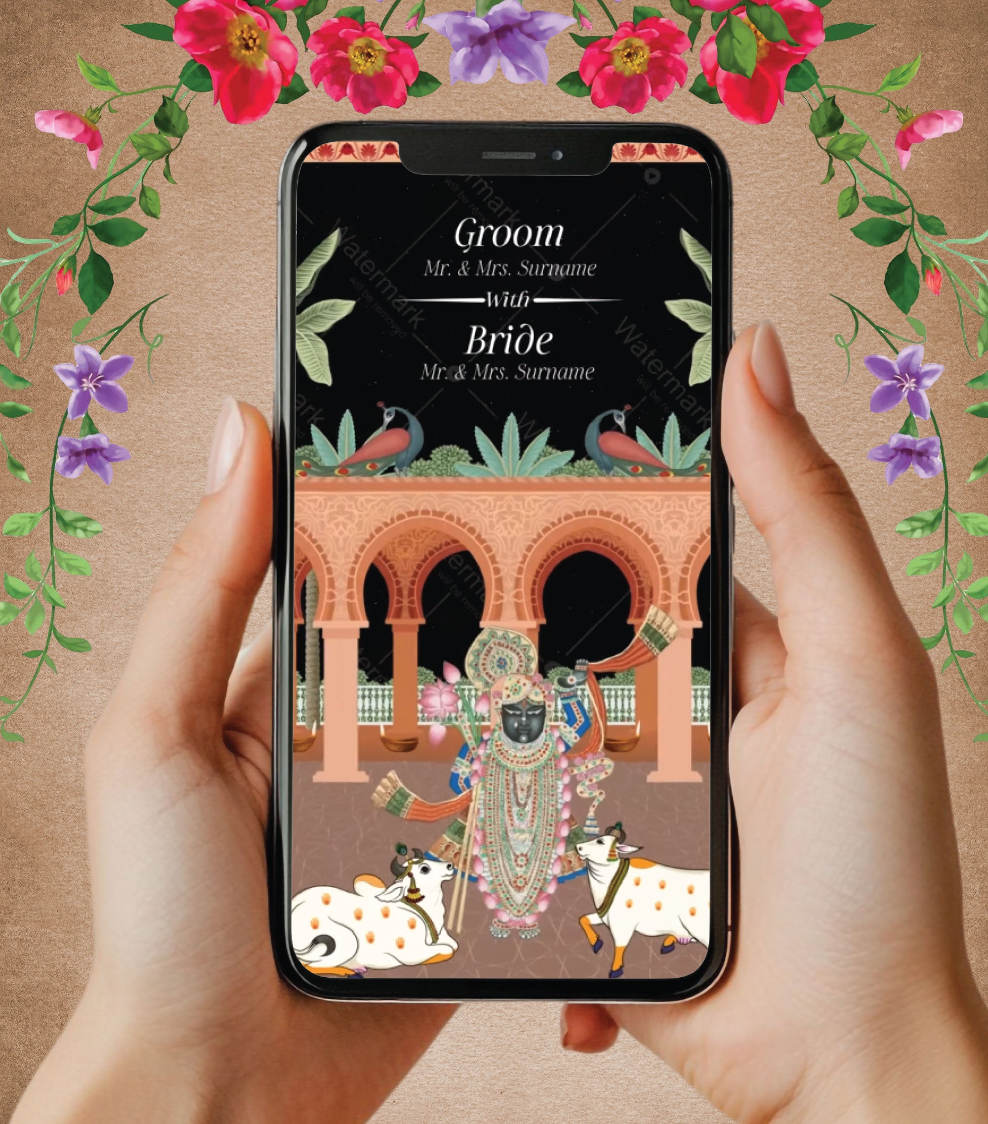 Shreenathji Krishna Wedding Invitation | Elegant Temple E-Invite | IM-2669