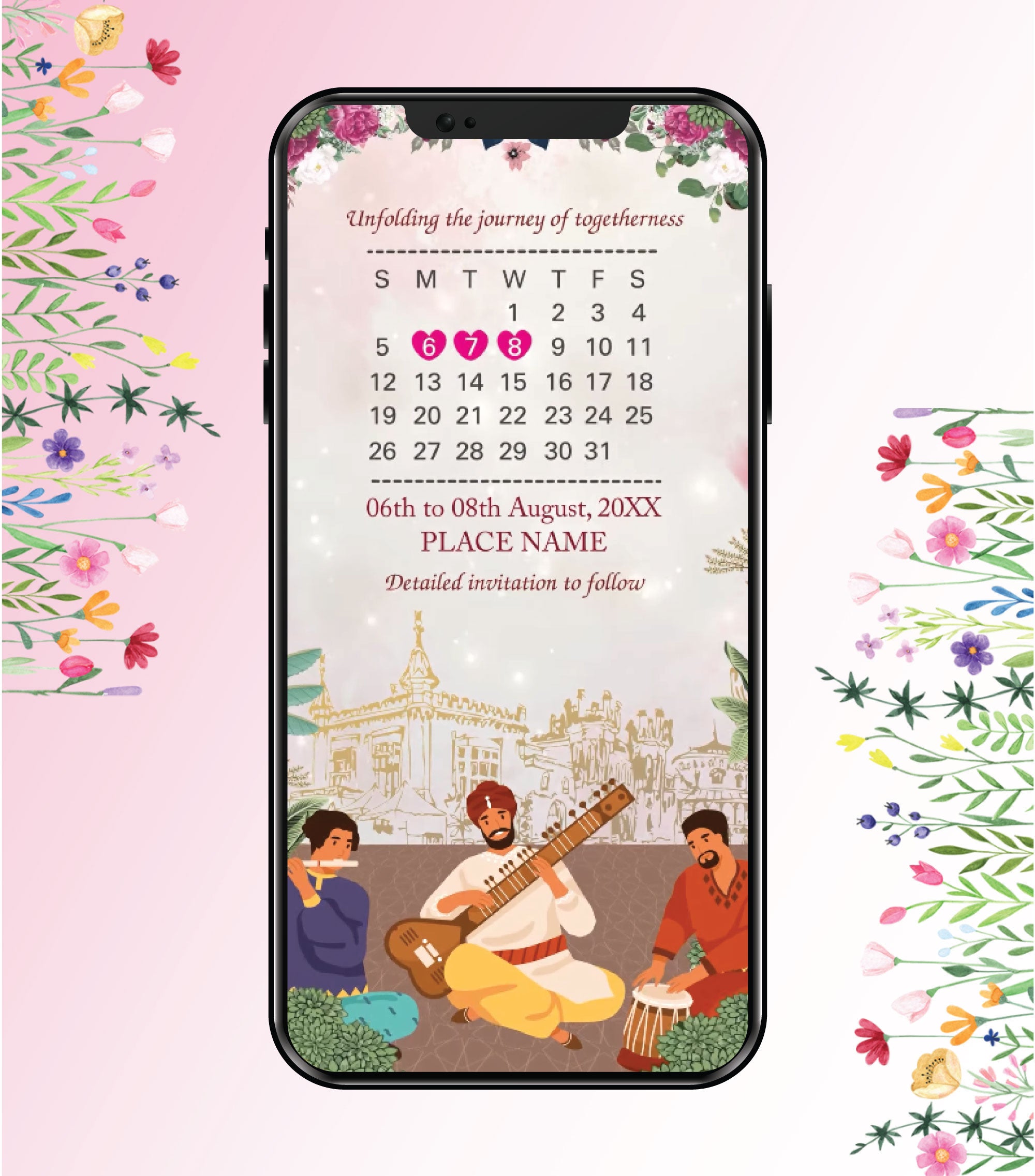 By choosing this digital save-the-date, you reduce printing costs and support an eco-friendly approach without compromising on visual impact. The combination of traditional motifs and modern animation gives this invite a timeless appeal that works beautifully for weddings with cultural or classic themes.