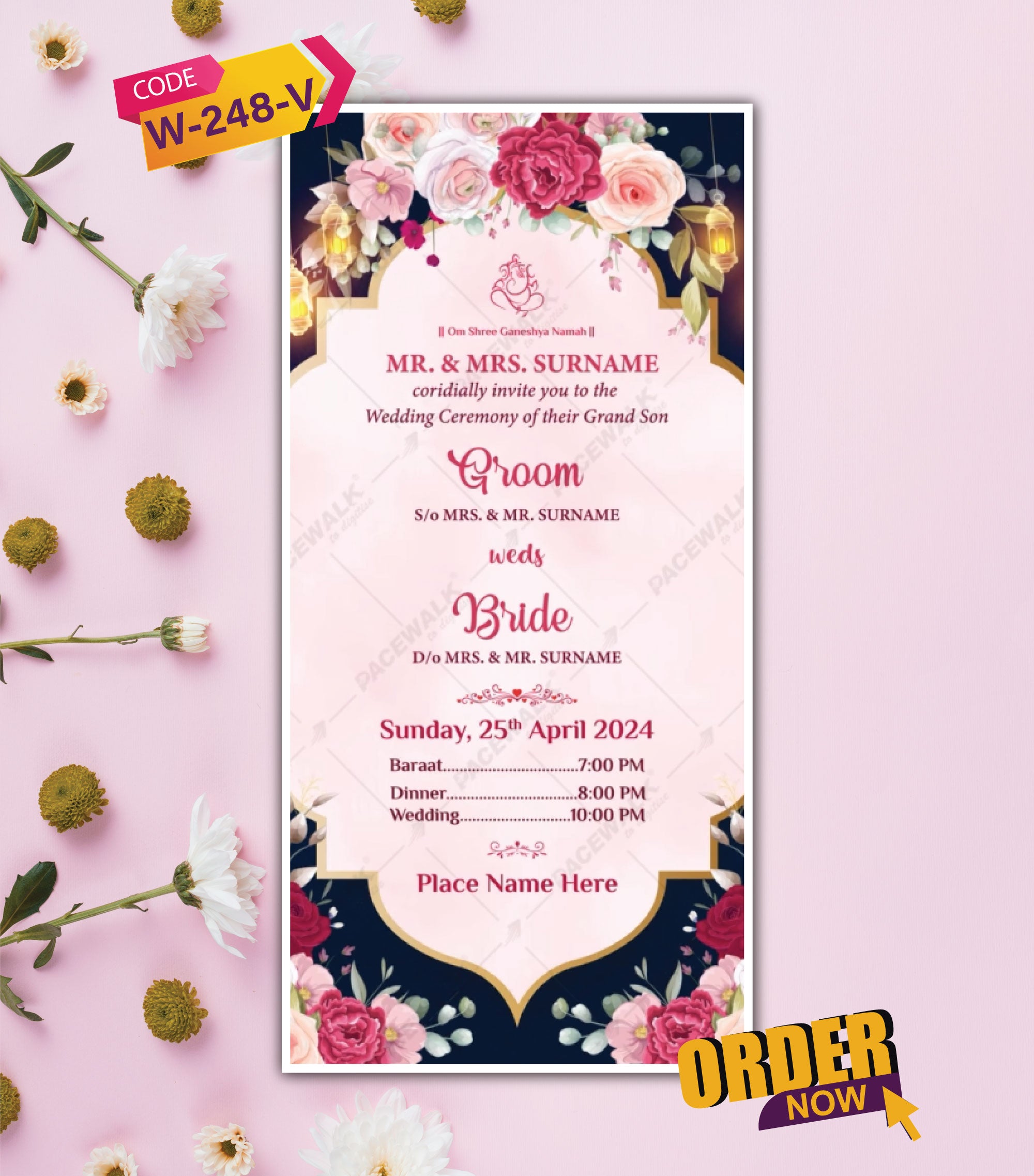 This digital wedding invite is fully customizable, allowing you to personalize all the key details like names, wedding date, venue, RSVP, and even a special message for your guests. The vertical video format is optimized for WhatsApp and social media sharing, ensuring that your invitation reaches your loved ones instantly and looks perfect on every device.
