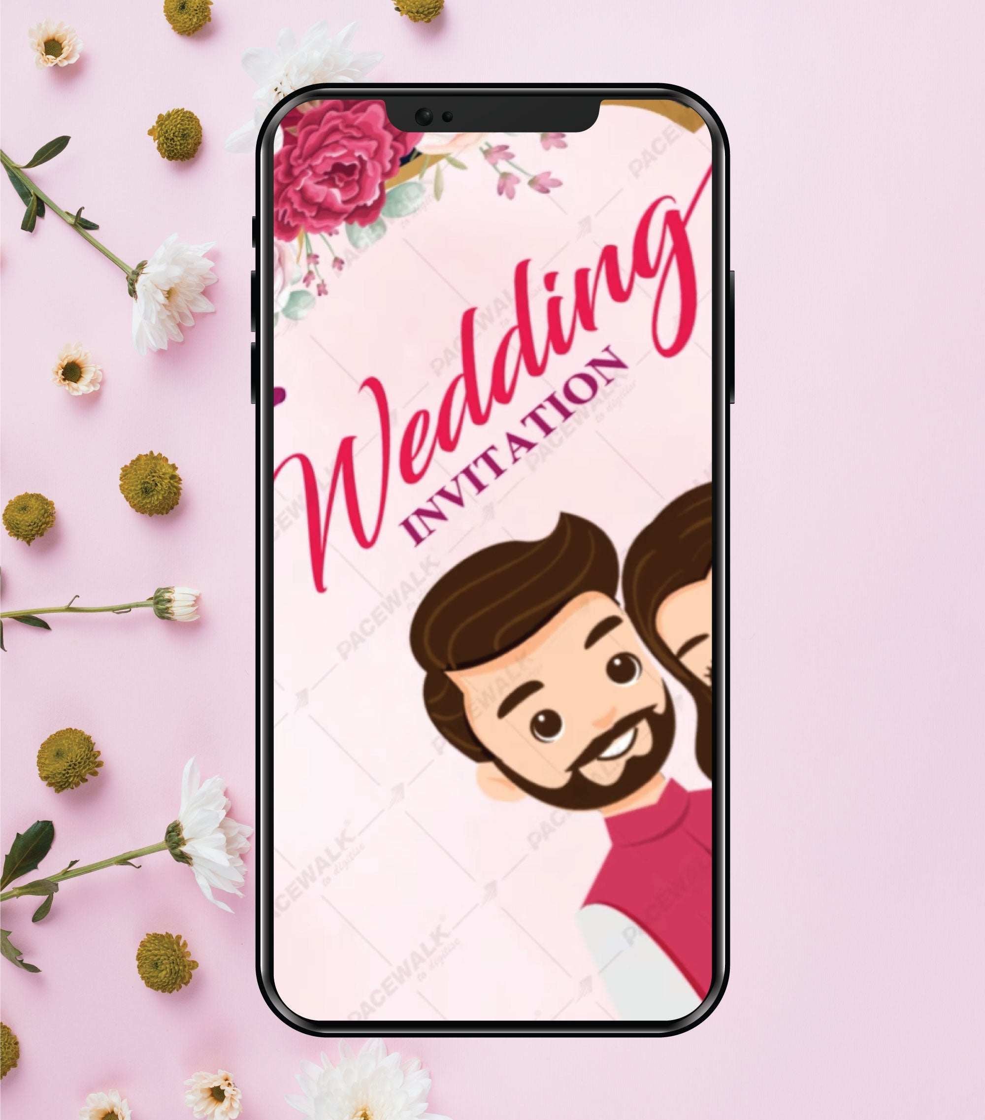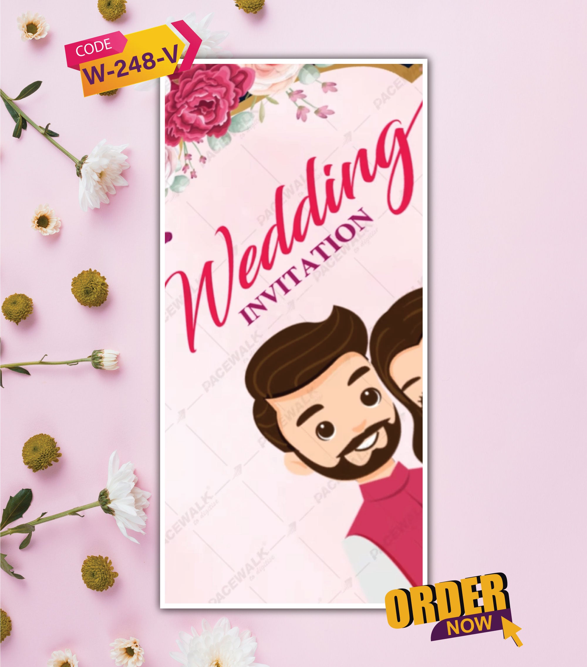 Celebrate your big day with elegance using this Red Rose Petals Wedding Invitation Video | Romantic Couple Theme E-Invite (W-248-V). Featuring a soft pink background and blooming red roses, this charming invitation video adds a romantic flair to your wedding announcement. The animated couple design with subtle floral accents and glowing lanterns gives a perfect blend of modern and traditional vibes.