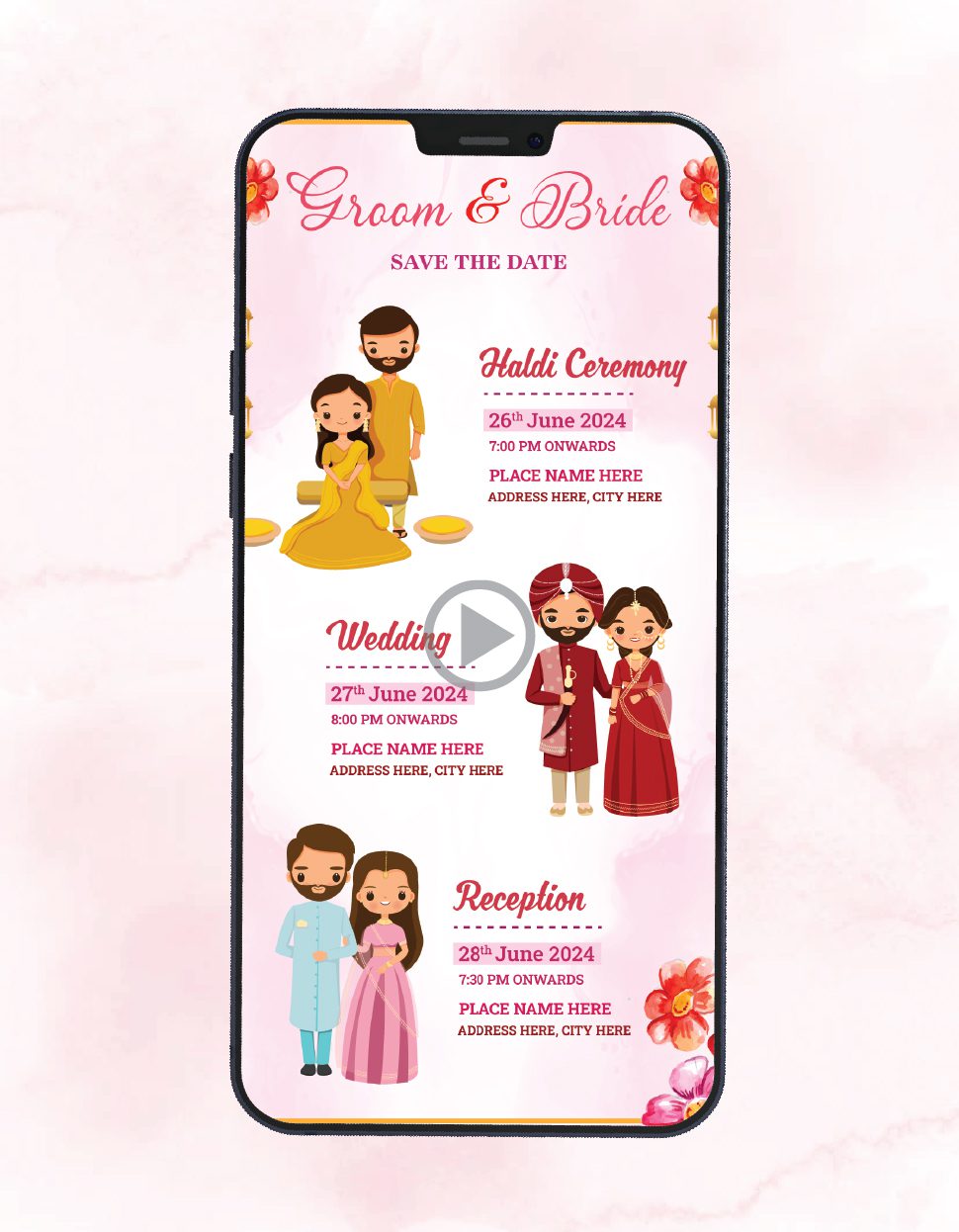 Indian Save The Date Invitation Video | Cute Haldi & Wedding Timeline E-Invite | W-220-V