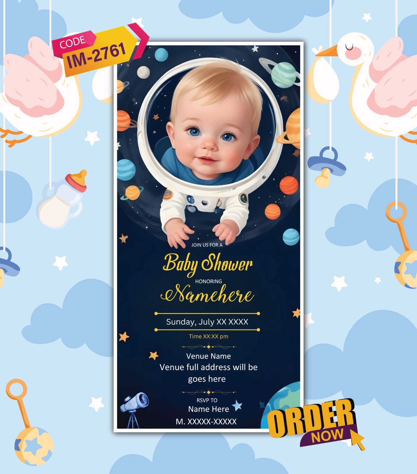 Baby Shower E-Invite | Adorable Space Theme Digital Baby Shower Card | IM-2761