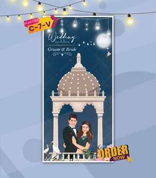 Caricature Wedding Invitation Video | Elegant Dome Night Theme E-Invite | C-7-V